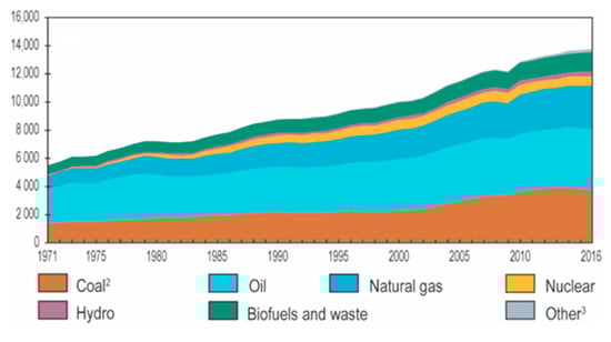 The data summarized above clearly shows that the future of renewables is promising. Although, it remains heavily dependent on government support policies; indeed, this combination of renewable sources and supporting government policies is unstable due to a handful of reasons. First of all, despite the extraordinary growth of photovoltaic and wind power plants in the world, the generation of energy from renewable sources is not keeping up with the rapid growth in energy demand. In 1987, fossil fuels covered 81% of the world’s energy consumption, after thirty years, this percentage has remained unchanged [,]. As shown in Figure 1, in 2015 the world total primary energy supply by fuel is still dominated by coal, oil and natural gas. Nuclear has increased over time, as well as biofuels and waste; hydro and others (geothermal, solar, wind, tide/wave/ocean, heat, and others) are last. On the other hand, a different scenario from the one shown in Figure 1 would have been improbable given that, in the last years, for each dollar given as subsidy to renewables, $2.60 have been given to fossil fuels. In addition, the energy generated from renewable sources and the energy demand are not shared between the consumption sectors in the same proportions. Notwithstanding the difficulties related to development for renewables, Chinese policy makers and planners are integrating the demand and supply of distinct sectors—electrifying heating, manufacturing, and transport—in those parts of the country where there is a large penetration of renewable energy generation [,].