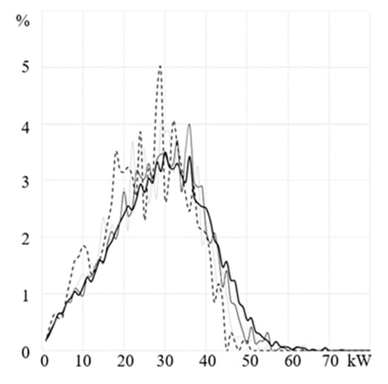 The literature reports show that having data with high temporal resolution can be a mandatory issue in order to reach correct and precise conclusions. For example, Richardson et al. in [] present an energy demand model to be used as a tool in the design of the local distribution network. The model returns the profile of the household load—the aggregated load profile—starting from the profiles of single appliances, previously created synthetically. Each synthetic profile faithfully reproduces the real-use case, since the temporal resolution is 1 min. The volatility of the demand for each single home, minute-by-minute, as well as the power factor of the aggregated load are almost perfectly represented in the 100–1000 W range; the energy consumption for powers up to 10 W, and above 1000 W are under-estimated as the night-time demand is under-estimated, mainly because the model does not exactly represent people’s behaviour (English men and women in the case of the paper) who leave the lights on while they sleep.