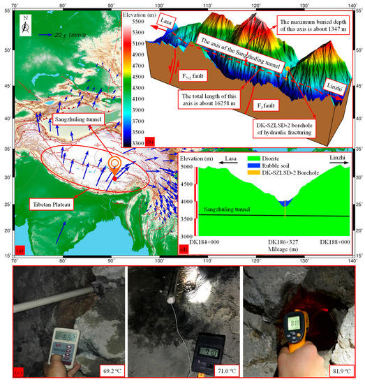 - Yan, J.; He, C.; Wang, B.; Meng, W.; Yang, J.F. Prediction of Rock Bursts for Sangzhuling Tunnel Located on Lhasa-Nyingchi Railway Under Coupled Thermo-Mechanical Effects. J. Southwest Jiaotong Univ. 2018, 53, 434–441. [Google Scholar]
