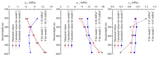 | Serial No. | Buried Depth (m) | (MPa) | (MPa) | (MPa) | |