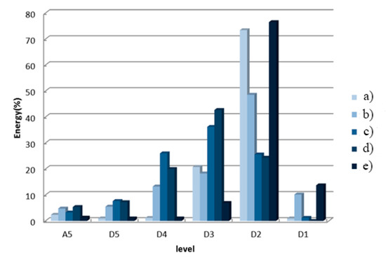 First, the proportion of the total energy of the signals in the A5 and D5 regions is less than 10%, and the five PD signals are not highly distinguishable.
