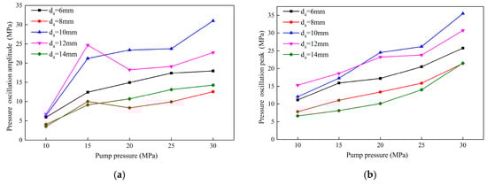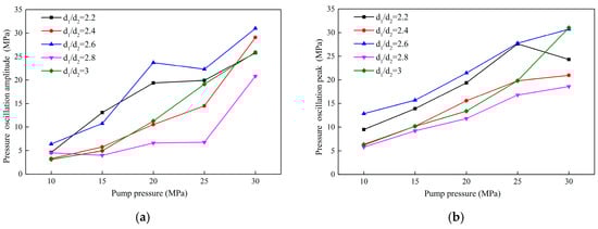 d5 value is 0.5, the pressure pulsation amplitude is almost 5 MPa or less and keeps steady with the pump pressure’s increases. It indicates that the fluid does not oscillate when passing through the nozzle at such a time. As