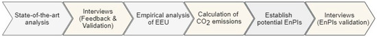 (5) Establish potential EnPIs: In line with the third research question, EnPIs currently applied in the industry were collected through the third part of the questionnaire, as mentioned in step 2. Additionally, the EnPIs addressed in different literature were also evaluated. The EnPIs were developed considering the relevant variables associated with energy performance and its characteristics. EnPIs were developed for the organizational level, system level, and process level.
