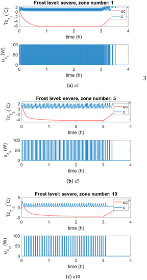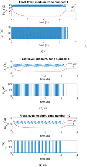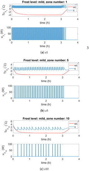 Medium frost canopy temperature simulation results for selected zones . Here, “uc” and “c” denote uncontrolled and controlled cases, respectively.