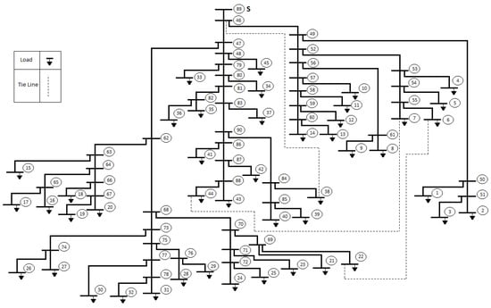 The test case considered in this section is a kV single-phase radial distribution system with no transformers and regulators, hereafter termed as Test90. The topological structure of this test network is shown in Figure 5 and the parameters and data can be found in []. The network has been implemented within the simulation framework described in Section 2. For the validation, no DGs are connected and all the loads are PQ type and their corresponding current injections are calculated using Equation (1).