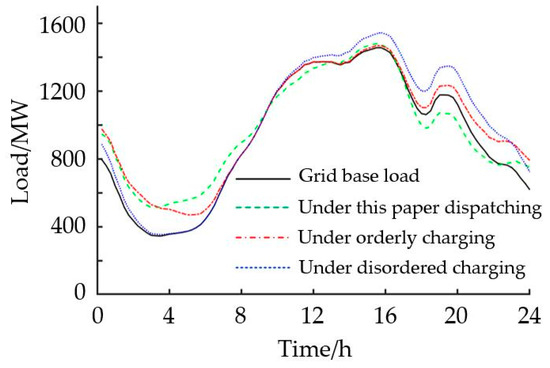 The charging–discharging resources of the EVs can not only be used as an important scheme for load peak–cutting and valley–filling, but also provide flexible dispatching response for the unit commitment under load optimization. This mechanism can reduce the cost of system operation, and realize the optimal cost of the whole economic dispatching. The specific analysis is as follows.