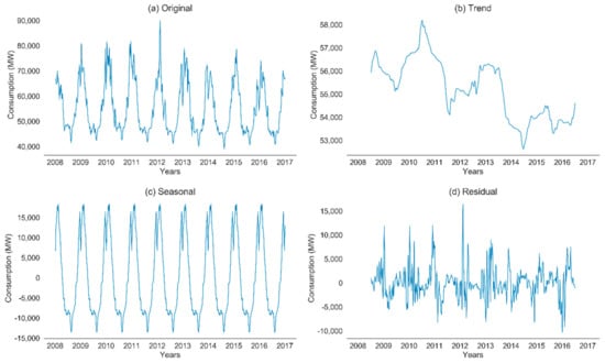 - Wang, C.H.; Grozev, G.; Seo, S. Decomposition and statistical analysis for regional electricity demand forecasting. Energy 2012, 41, 313–325. [Google Scholar] [CrossRef]