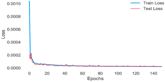 A model fit is considered suitable when the performance of the model on both the training and validation sets is good and does not overfit. The learning curve in Figure 12 shows the decay of the loss function with epochs. This curve can help predict whether the model has overfitted, under-fitted, or is fit for the training and testing datasets. The plot shows that loss function decays quite rapidly to a low value given the large training set. Training and validation losses decrease and stabilize around the same point. The model thus successfully captures the electricity consumption patterns.