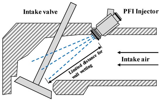 Schematic diagram of intake port in PFI system and definition of limited distance for wall wetting.