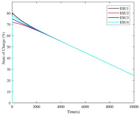 Figure 5 represents the simulation result of the SOC level of four ESUs.