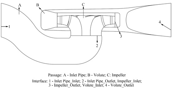The inlet and outlet condition in the calculation were set as “total pressure” and “mass flow rate”, respectively. The no slip wall condition and a roughness of 25 μm were utilized for describing the solid walls. The value of reference pressure was 101.325 kPa and the “Frozen Rotor” was set in the interface condition between the rotor and stator. The residual and the maximum step of the simulation was 10−4 and 500, respectively.