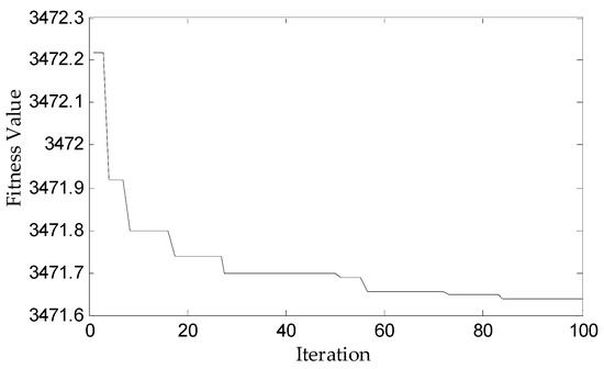 The fitness curve of PSO optimization is shown in Figure 9. The particle’s fitness reaches the minimum when it iterates to the 84th time, whose corresponding particle values are respectively 74.7 A and 93.6 A. In this case, the output current fluctuation of the VPS is the smallest.
