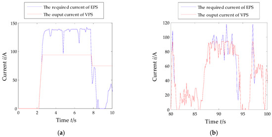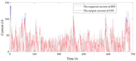 The comparison between the required current of EPS and the optimized output current of vehicle power supply (VPS).