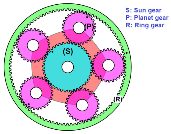 where FW is the face width of the gear, , , and are the diameter of the sun, the planets, and the ring gear respectively. presents the gear volume and is a scaling factor and it is selected from [23,24].