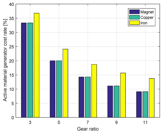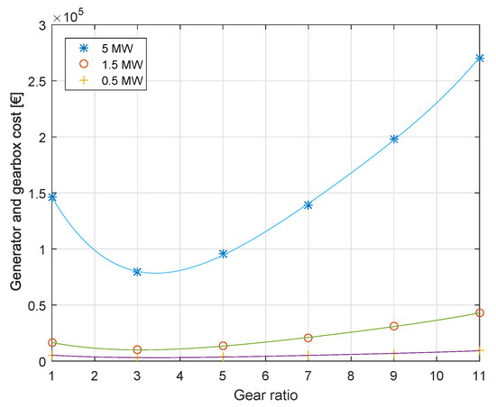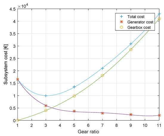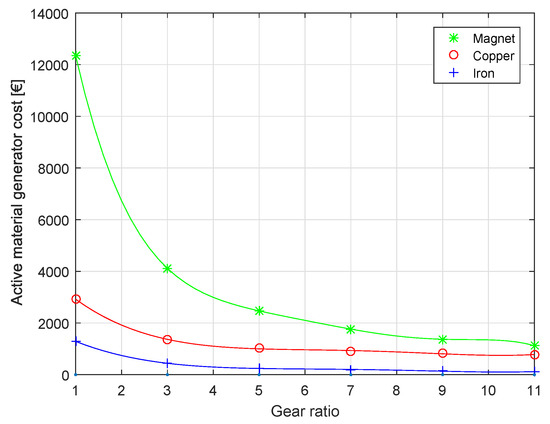 The cost-function depends on the gearbox ratio and the size parameters of the PMG. However, if the analytical modeling is considered, the PMG cost will depend only on the following variables .