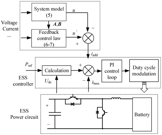 The design of the additional feedback control of the ESS is demonstrated in Equation (7):