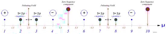 For any harmonic order originating from (39), the application of (32) gives always zero value. In addition, all phase currents (related to the analyzed harmonic) are in phase with each other and therefore generate zero sequence (non-rotating) field.