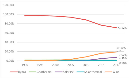 Figure 1). During recent decades, the share of energy from wind and solar photovoltaic (PV) in total production of renewable energy has increased significantly.