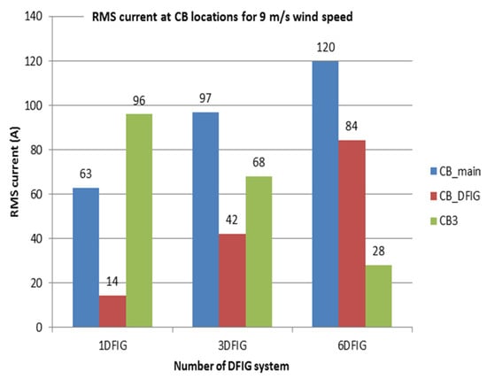 Similarly, Figure 3 illustrates variations in loading currents at different CB locations as the number of connected DFIG systems at the PCC changes. Consequently, having represented the effective parameters in variations of load currents within the interconnected distribution network, it is obvious that adjustment for protection settings is imperative to maintain the desired reliability and performance of the protection system.