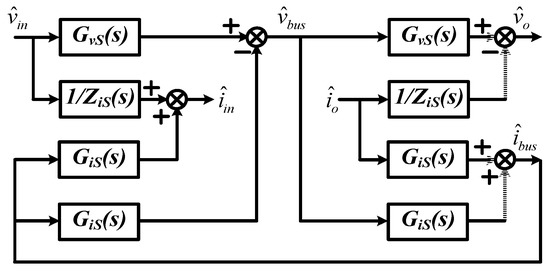 However, when discussing the small-signal model of a single converter individually, the input voltage source is an ideal constant voltage source. Therefore, considering the significant changes in the input voltage during the state’s derivation variables of each component is unnecessary. In the actual series system, considering that the post-stage converter’s input voltage is no longer an ideal constant voltage source, the small-signal model of the entire machine in the series system should be re-modeled by the state-space averaging method. In practical applications, multi-level converters may use different control mechanisms for individual control, such as the frequency conversion control commonly used in LLC converters and Buck converters’ pulse-width-modulation (PWM) control. Using different control modes will make it difficult for the entire system to be modeled using the state-space averaging method. Thus, when analyzing the small-signal model of the system in series, most of the individual small-signal models are directly connected in series for analysis.