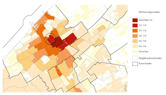 - FSI: < 1860 The historic centre—FSI = > 1.4