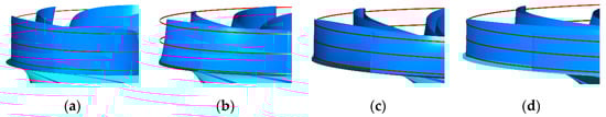 Differences of blade leading edge diameters of the four pump-turbines: (a) PT-1, (b) PT-2, (c) PT-3, (d) PT-4.