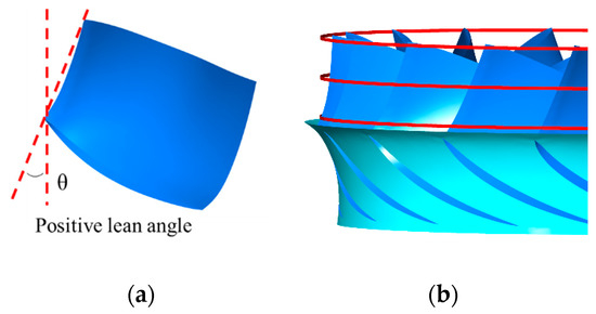 Lean angle of blade leading edge and inlet diameter of CT. (a) Inlet lean angle and (b) inlet diameter.