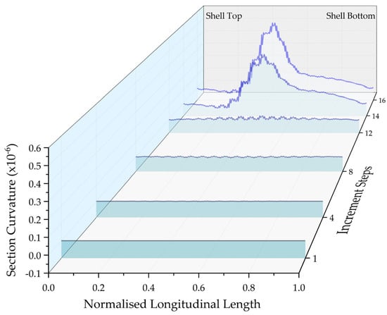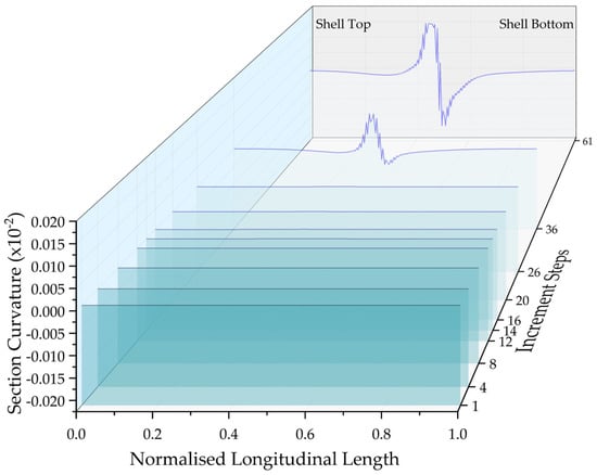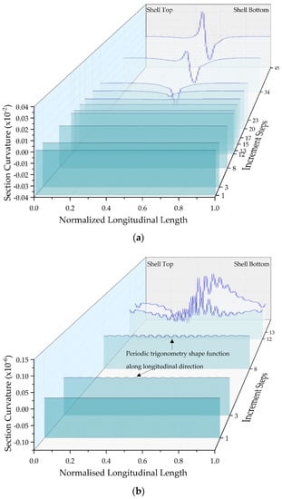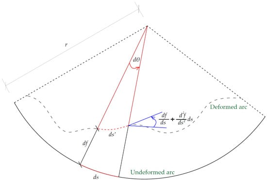 In Equation (26), represents the distortion rate of the cross section of the shell’s surface, and is the arc length of the selected shell element.