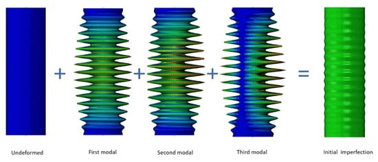 Modal imperfection shape combination of the cylindrical shell, the result is shown in a scale factor of 100.