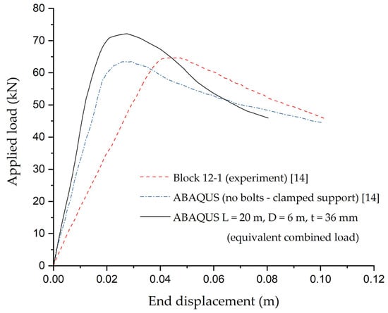 - Wang, J.; Sadowski, A.J. Elastic Imperfect Cylindrical Shells of Varying Length under Combined Axial Compression and Bending. Comp. Struc. 2020, 146, 422–433. [Google Scholar] [CrossRef]