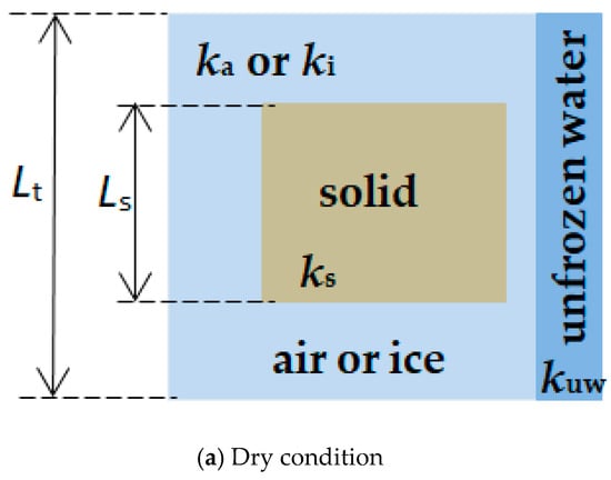 - Tian, Z.; Lu, Y.; Horton, R.; Ren, T. A simplified de Vries-based model to estimate thermal conductivity of unfrozen and frozen soil. Eur. J. Soil Sci. 2016, 67, 564–572. [Google Scholar] [CrossRef]