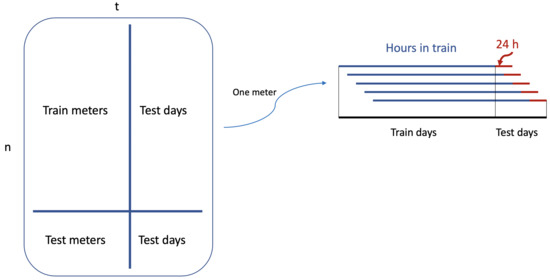 Scheme of out-of-sample evaluation along meters and time for each group and method.