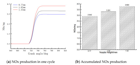 Accumulated NOx production under different nozzle extension heights.