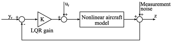 The full-state Linear–Quadratic Regulator (LQR) controller was successfully applied for trajectory tracking for various aircraft: fixed-wing [6,8,9], helicopters [10,11] and UAVs [12,13]. In case of incomplete state information, the LQG controller can be used instead. In [14] the LQG controller was designed to handle the tracking task for a linear business jet aircraft. In [15] a controller was designed for a nonlinear system that was sequentially linearized for missile path-following. In [16] the system stability is regained by using a LQG controller. A different approach is used in [17] to handle with the partial information- reduced-order observer is used to estimate unmeasured states.