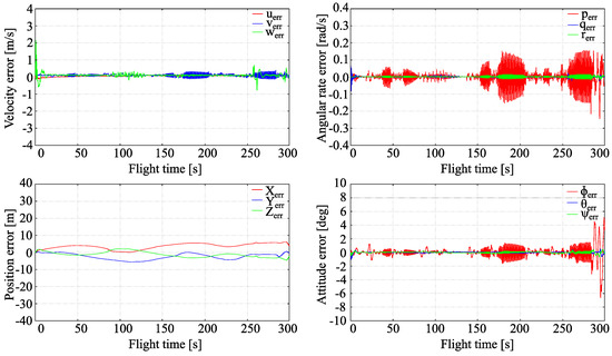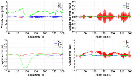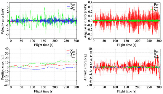 Relative deviations of the estimated aerodynamic coefficients are shown in Table 1. A rule of thumb is that relative standard deviations below 10% denote accurate estimates [32]. From the obtained outcomes, it can be seen that all the parameters were estimated with high precision. The results are also comparable with the outcomes obtained in previous studies [6]—when process noise was not present in the data and thus output error method was used.