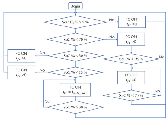 - Duchossois, F.; Madi, N.; Pascal, J. Ruled-Based Energy Management Strategy for a Fuel-Cell Battery Vehicle. In Proceedings of the 2017 IEEE Vehicle Power Propulsion Conference (VPPC), Belfort, France, 1–14 December 2017. [Google Scholar]