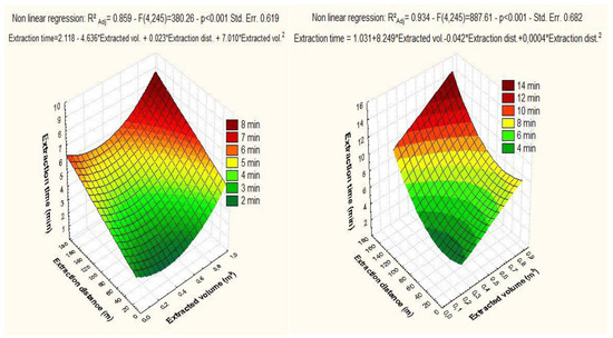 Figure 1) highlighted a good statistical correlation between extraction time, extracted volume and extraction distance, with R