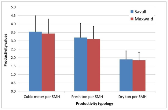 −1 and 6.08 m3PMH−1 for the yarder line with the Savall carriage and 4.55 m