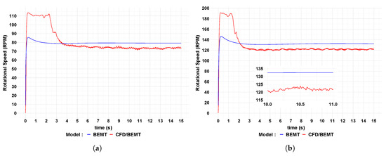 Rotational Speed for (a) Uo = 0.6 m/s and (b) Uo = 1.0 m/s.