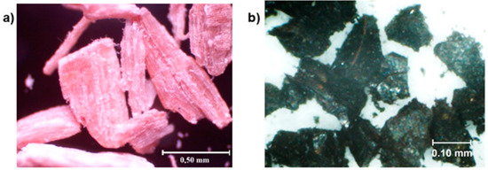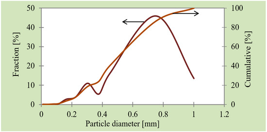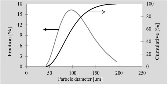 Wood chips (biomass) and hard coal from the Polish coal mine “Sobieski” were used as solid fuels. Microscopic photographs of biomass and coal are shown in Figure 4, and particle size distribution of the fuels are given in Figure 5 and Figure 6, respectively.