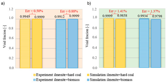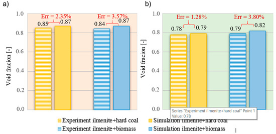 Figure 10 and Figure 11 show the comparison between experiment and simulation results for void fractions of the fluidized bed in the AR and FR.
