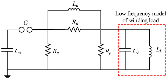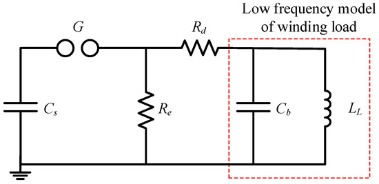 Practically, in the low frequency range (below 10 kHz) the winding can be represented well by an equivalent circuit of an inductor in parallel with a capacitor. It is noticed by Glaninger that, if the inductance of the winding is less than 15 mH, the conventional circuit is quite difficult to apply and it is difficult to adjust T2 to longer than 40 μs [7]. Therefore, Glaninger’s generator circuit, as illustrated in Figure 3, is recommended to apply in the lightning impulse voltage test.