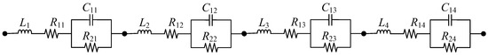 For two rational terms with the complex conjugate pairs, the equivalent circuit can be represented, as illustrated in Figure 5, and the impedance with Laplace variable (s) of the equivalent circuit can be derived as Equation (9).