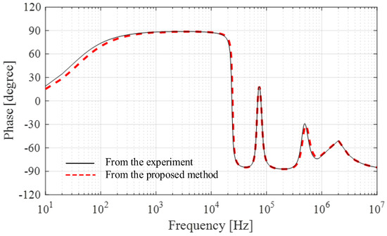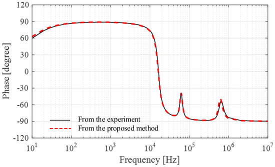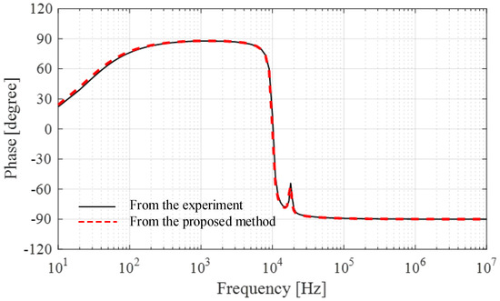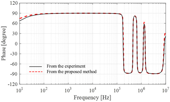 Phase of input impedances of the reactor from the measurement and by the proposed method.