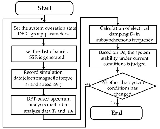 The main influencing factors of stability in DFIG-based series compensated system are wind speed, series compensation degrees, a number of DFIG turbines and the proportional coefficient kP in the inner ring of the rotor side converter [14,15]. Among them, the wind speed, series compensation degrees and kP have a linear relationship with the system stability: the higher the wind speed, the smaller the series compensation degrees and kP, the stronger the system stability; the number of DFIG turbines has a nonlinear relationship with the system stability. Moreover, DFIG turbines at different positions have different effects on SSR resonance characteristics [16].
