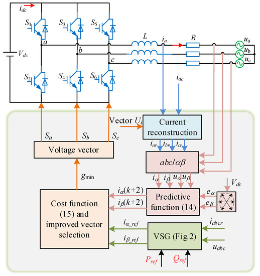 The control structure of proposed MPC-VSG using reconstructed current and improved vector selection.