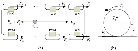Longitudinal motion of IWM-EV: (a) Vehicle body; (b) Local wheel.
