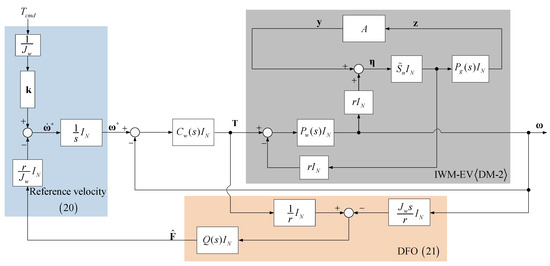 where , and . Based on (17), the linearized model of IWM-EV (DM-2) is established as in Figure 8 where η = [η1 … ηN]T and