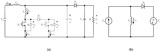 In order to realize the zero-voltage or zero-current switching of the main switch, the above-mentioned individual structures can be adopted, depending on the situation. However, the general soft switching power electronic converter requires additional complex auxiliary circuits, which increases the number of components [7]. Moreover, most of the auxiliary switches of soft switching power electronic converters are floating, and this increases the complexity of the circuit design [14]. In summary, although the general soft switching power electronic converter can increase the switching frequency, reduce electromagnetic interference (EMI), and reduce the component stress of the switch, the addition of too many components can tend to lead to higher cost, larger volume and inability to effectively improve efficiency.