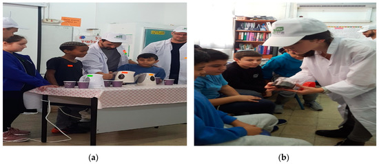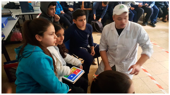 In the frontal part of the course, the students were introduced to the Israeli society and knowledge on environmental issues—renewable energy, energy efficiency, waste and recycling and water pollution. The students learned how they can produce fun activities to deliver the principles of each subject and then they were divided into work groups, each handling a single subject. In the practical part of the course, each group planned, purchased and built experiment workshops which demonstrated the principles of the subjects. Then, the groups went to the school and taught the material using the workshops. Before each lesson, the pupils were given a multiple-choice questionnaire in order to estimate their initial level of knowledge. When the activity was complete, the pupils were given the same questionnaire, this time in order to see the progress in knowledge achieved by the lesson, compared to the pupils’ initial knowledge.